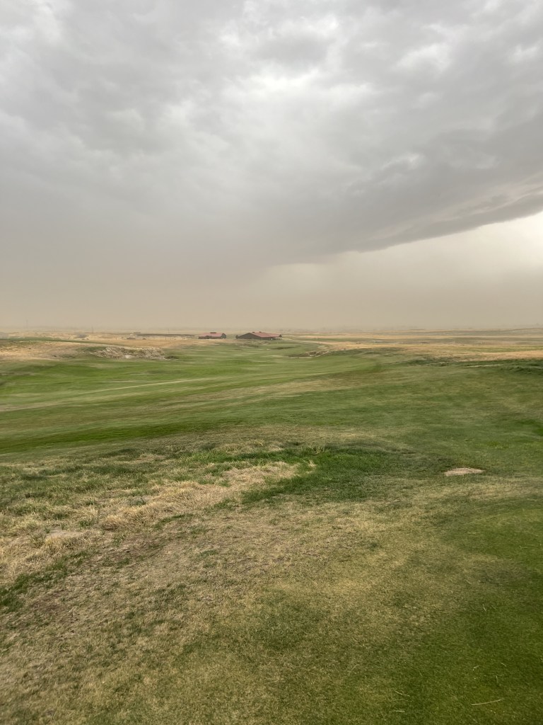 Over my two-day golf trip in Eastern Washington. Wine Valley was the course I was looking forward to, the most. By the time I arrived to play on Wednesday around the noon hour. Much of my journey was in the rear-view mirror. I had crossed the state on Monday. Played golf at Palouse Ridge on Tuesday afternoon. Spent time in the cities of Moscow and Pullman. Then, drove from Pullman to Walla Walla on Wednesday morning to experience Wine Valley. The sun had been shining along the entirety of my drive. When I pulled into the parking lot of Wine Valley Golf Club, about fifteen minutes south of Walla Walla, the sky remained a fantastic blue. When I got out of my car, after my two-hour drive, there were no signs that anything about the weather would change. The wind could be felt blowing across the endless acres of farmland surrounding the course. But the wind didn’t feel like it would have much impact on the golf day. All my thoughts about the weather would change about halfway through the round of golf. The blue sun filled sky would vanish and the sky would grow dark, with the wind gusting much stronger than I was feeling in the parking lot. I understood none of this weather information, as I pulled the clubs out of my car, and changed into my golf shoes.